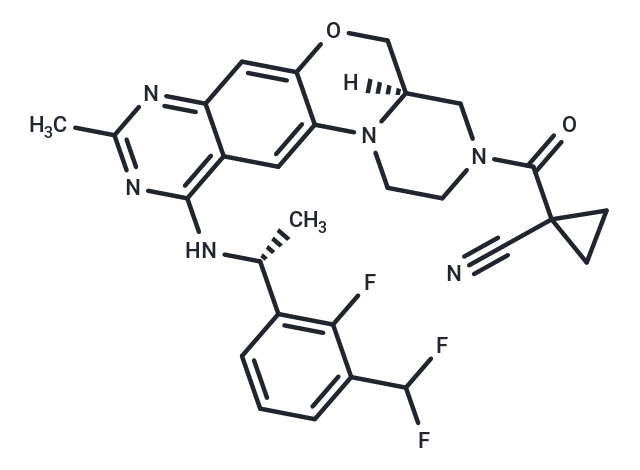 SMILESC(=O)(C1(C#N)CC1)N2C[C@]3(N(CC2)C=4C(OC3)=CC=5C(C4)=C(N[C@H](C)C6=C(F)C(C(F)F)=CC=C6)N=C(C)N5)[H]
