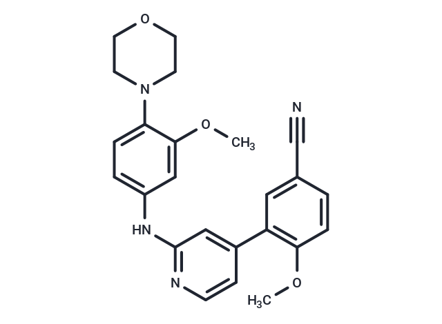 SMILESN#CC=1C=CC(OC)=C(C1)C=2C=CN=C(C2)NC3=CC=C(C(OC)=C3)N4CCOCC4