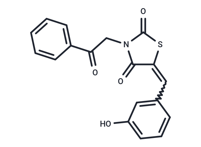 SMILESO=C1SC(=CC=2C=CC=C(O)C2)C(=O)N1CC(=O)C=3C=CC=CC3