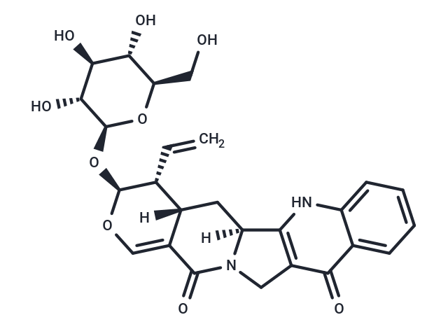 SMILESO=C1N2[C@](C3=C(C2)C(=O)C=4C(N3)=CC=CC4)(C[C@@]5(C1=CO[C@@H](O[C@@H]6O[C@H](CO)[C@@H](O)[C@H](O)[C@H]6O)[C@@H]5C=C)[H])[H]