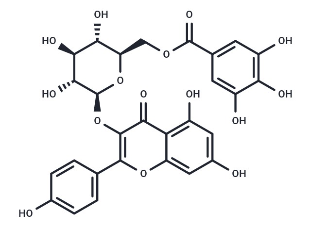 Brief DescriptionKaempferol 3-O-(6''-galloyl)-beta-D-glucopyranoside is a glucopyranoside that inhibits HIV-2 RNase H with an IC50 of 5.19 μM.