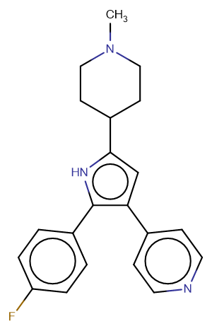 SMILESCN1CCC(CC1)c1cc(c([nH]1)-c1ccc(F)cc1)-c1ccncc1
