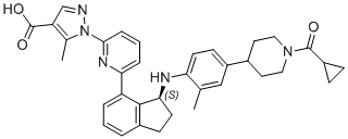 Chemical Name(S)-1-(6-(3-((4-(1-(cyclopropanecarbonyl)piperidin-4-yl)-2-methylphenyl)amino)-2,3-dihydro-1H-inden-4-yl)pyridin-2-yl)-5-methyl-1H-pyrazole-4-carboxylic acid