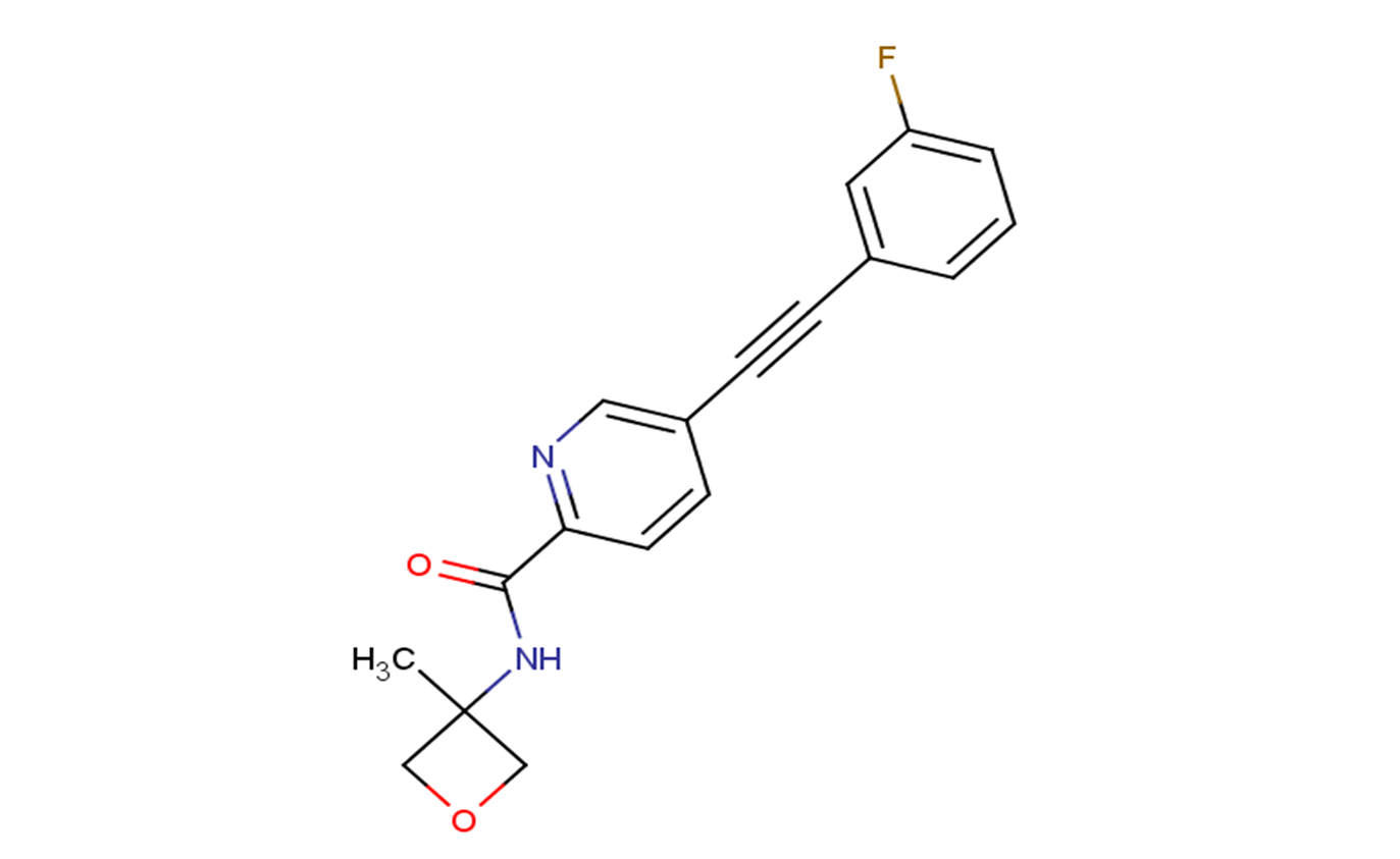SMILESCC1(COC1)NC(=O)C2=NC=C(C=C2)C#CC3=CC(=CC=C3)F
