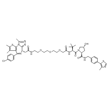 SMILESO=C([C@H]1N(C([C@@H](NC(COCCOCCOCCNC(C[C@H]2C3=NN=C(C)N3C4=C(C(C)=C(C)S4)C(C5=CC=C(Cl)C=C5)=N2)=O)=O)C(C)(C)C)=O)CCC1)NCC6=CC=C(C7=C(C)N=CS7)C=C6