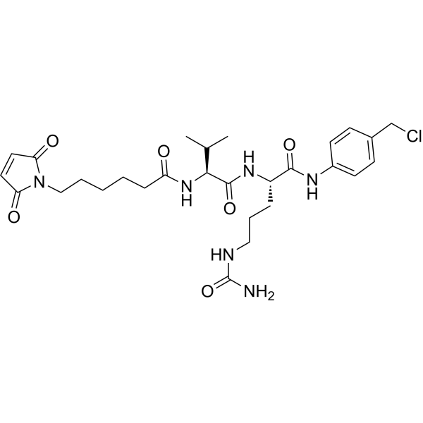 SMILESCC(C)[C@H](NC(=O)CCCCCN1C(=O)C=CC1=O)C(=O)N[C@@H](CCCNC(N)=O)C(=O)Nc1ccc(CCl)cc1