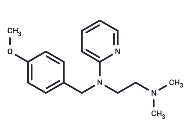 Brief DescriptionMepyramine is a histamine H1 antagonist. It has mild hypnotic properties and some local anesthetic action and is used for allergies both parenterally and locally.