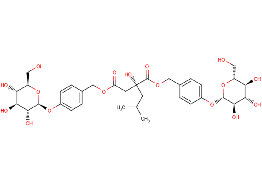 SMILESCC(C)CC(O)(CC(=O)OCC1=CC=C(O[C@@H]2O[C@H](CO)[C@@H](O)[C@H](O)[C@H]2O)C=C1)C(=O)OCC1=CC=C(O[C@@H]2O[C@H](CO)[C@@H](O)[C@H](O)[C@H]2O)C=C1