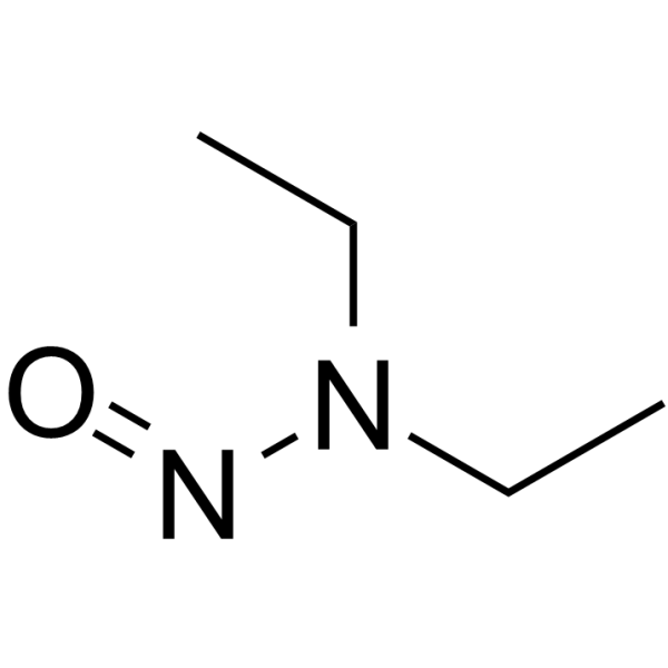 DescriptionN-Nitrosodiethylamine is a potent hepatocarcinogenic dialkylnitrosoamine. N-Nitrosodiethylamine is mainly present in water, tobacco smoke, cheddar cheese, cured, fried meals and many alcoholic beverages. N-Nitrosodiethylamine is responsible for the changes in the nuclear enzymes associated with DNA repair/replication. N-Nitrosodiethylamine results in various tumors in all animal species. The main target organs are the liver, nasal cavity, trachea, lung and esophagus.(In Vivo):Mice with N-Nitrosodiethylamine (25mg/kg) intraperitonially resulted in fatty liver disease leading to progress of cancer disease.