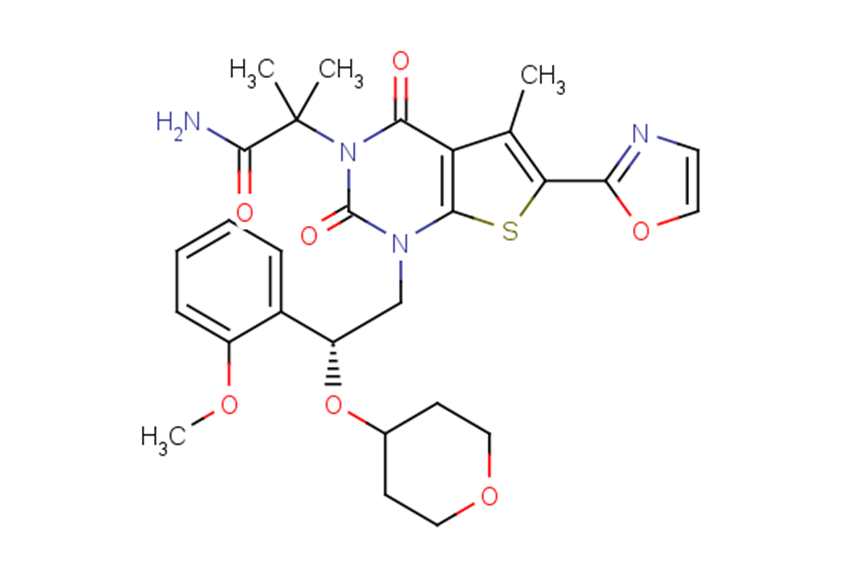 SMILESCOc1ccccc1[C@H](Cn1c2sc(-c3ncco3)c(C)c2c(=O)n(c1=O)C(C)(C)C(N)=O)OC1CCOCC1