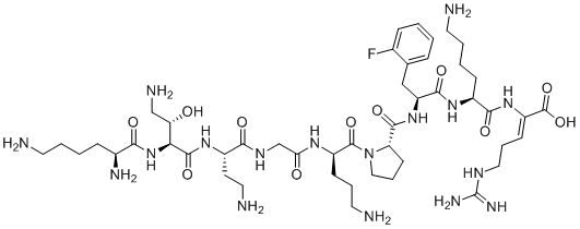 SMILESC1CC(N(C1)C(=O)C(CCCN)NC(=O)CNC(=O)C(CCN)NC(=O)C(C(CN)O)NC(=O)C(CCCCN)N)C(=O)NC(CC2=CC=CC=C2F)C(=O)NC(CCCCN)C(=O)NC(=CCCN=C(N)N)C(=O)O