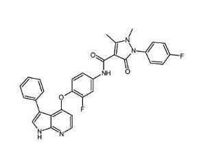 Chemical NameN-(3-fluoro-4-((3-phenyl-1H-pyrrolo[2,3-b]pyridin-4-yl)oxy)phenyl)-2-(4-fluorophenyl)-1,5-dimethyl-3-oxo-2,3-dihydro-1H-pyrazole-4-carboxamide.