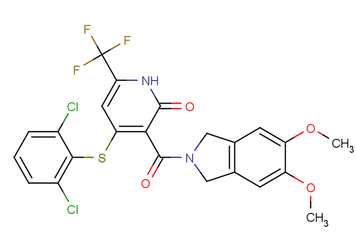 SMILESO=C1C(C(N2CC3=C(C=C(OC)C(OC)=C3)C2)=O)=C(SC4=C(Cl)C=CC=C4Cl)C=C(C(F)(F)F)N1