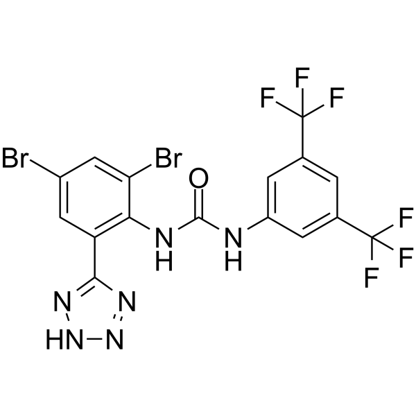 SMILESFC(F)(F)c1cc(NC(=O)Nc2c(Br)cc(Br)cc2-c2nn[nH]n2)cc(c1)C(F)(F)F