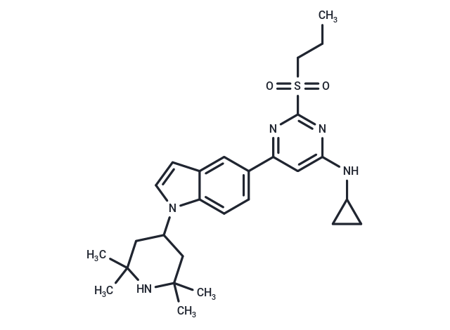 SMILESO=S(=O)(C1=NC(=CC(=N1)C2=CC=C3C(C=CN3C4CC(NC(C)(C)C4)(C)C)=C2)NC5CC5)CCC