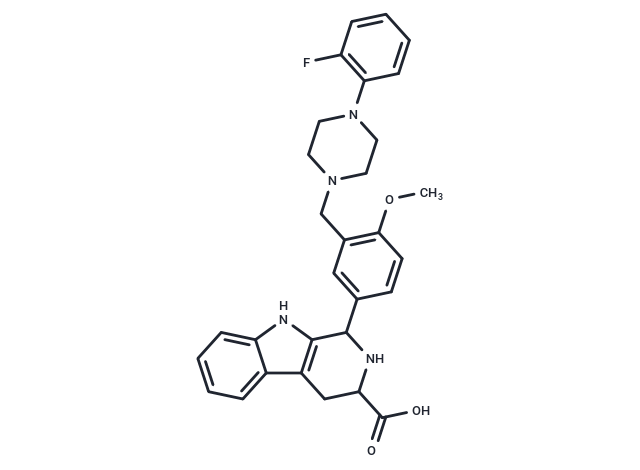 SMILESC(O)(=O)C1CC2=C(C(N1)C3=CC(CN4CCN(CC4)C5=C(F)C=CC=C5)=C(OC)C=C3)NC=6C2=CC=CC6