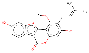 SMILESCC(C)=CCc(c(O)cc(O1)c2-c(oc3c4ccc(O)c3)c4C1=O)c2OC