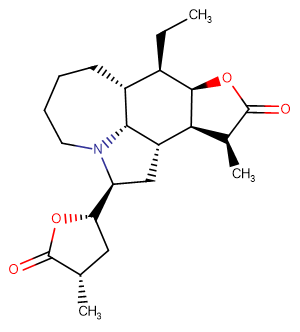SMILESCC[C@H]1[C@H]2OC(=O)[C@@H](C)[C@H]2[C@@H]2C[C@@H]([C@@H]3C[C@H](C)C(=O)O3)N3CCCC[C@H]1[C@H]23