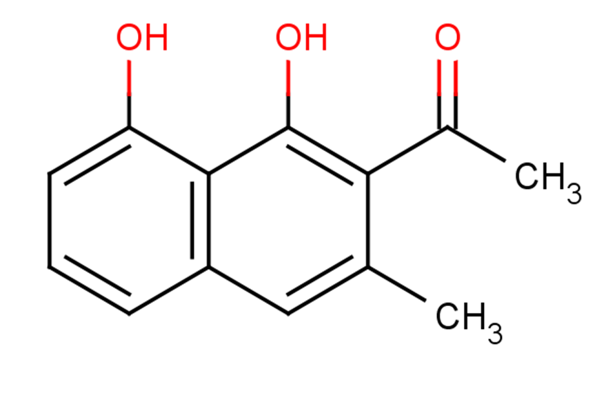 DescriptionNepodin has antimalarial, and anti-inflammatory activities, it shows significant cyclooxygenase (COX) inhibitory activity. Nepodin has an antidiabetic effect, which is at least partly mediated by stimulation of GLUT4 translocation via AMPK activation by nepodin.To obtain a novel modulator of glucose metabolism, we conducted screening of a small compound library in cultured L6 myotubes. We identified Nepodin that stimulated glucose uptake dose-dependently in differentiated L6 myotubes. The stimulatory effect of Nepodin on glucose uptake was abrogated by a 5'-adenosine monophosphate-activated protein kinase (AMPK) inhibitor. In addition, Nepodin stimulated the phosphorylation of AMPK. Nepodin also stimulated the translocation of GLUT4 to the plasma membrane in L6 myoblasts transfected with a Glut4 cDNA-coding vector and in differentiated L6 myotubes. In in vivo study, Nepodin suppressed the increases in fasting blood glucose levels and improved the glucose intolerance of C57BL/KsJ-db/db mice, a type 2 diabetic animal model. Nepodin rescued the impaired phosphorylation of AMPK in the skeletal muscle of db/db mice.