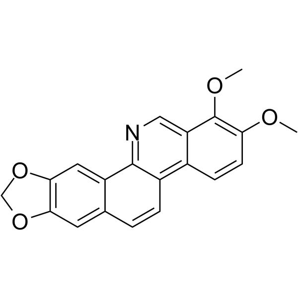 Brief DescriptionNorchelerythrine shows significant inhibitory activity against Staphylococcus aureus ATCC 6538 with MIC values ranging from 12.5 to 50 ug/mL. It exhibits strong antifeeding activity in a concentration-dependant manner with the EC50 of 62.67 ppm.