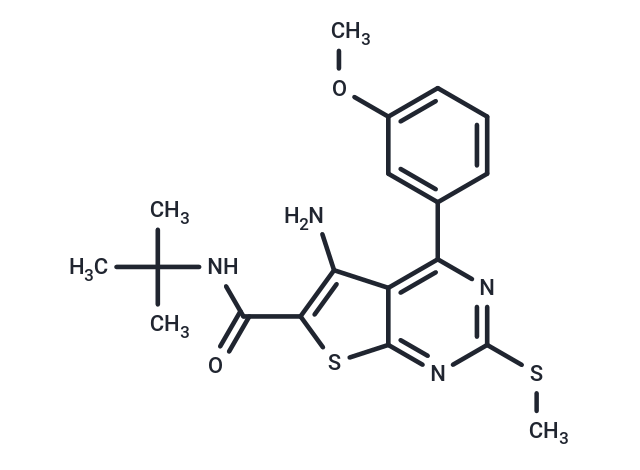 SMILESCOc1cccc(c1)-c1nc(SC)nc2sc(C(=O)NC(C)(C)C)c(N)c12