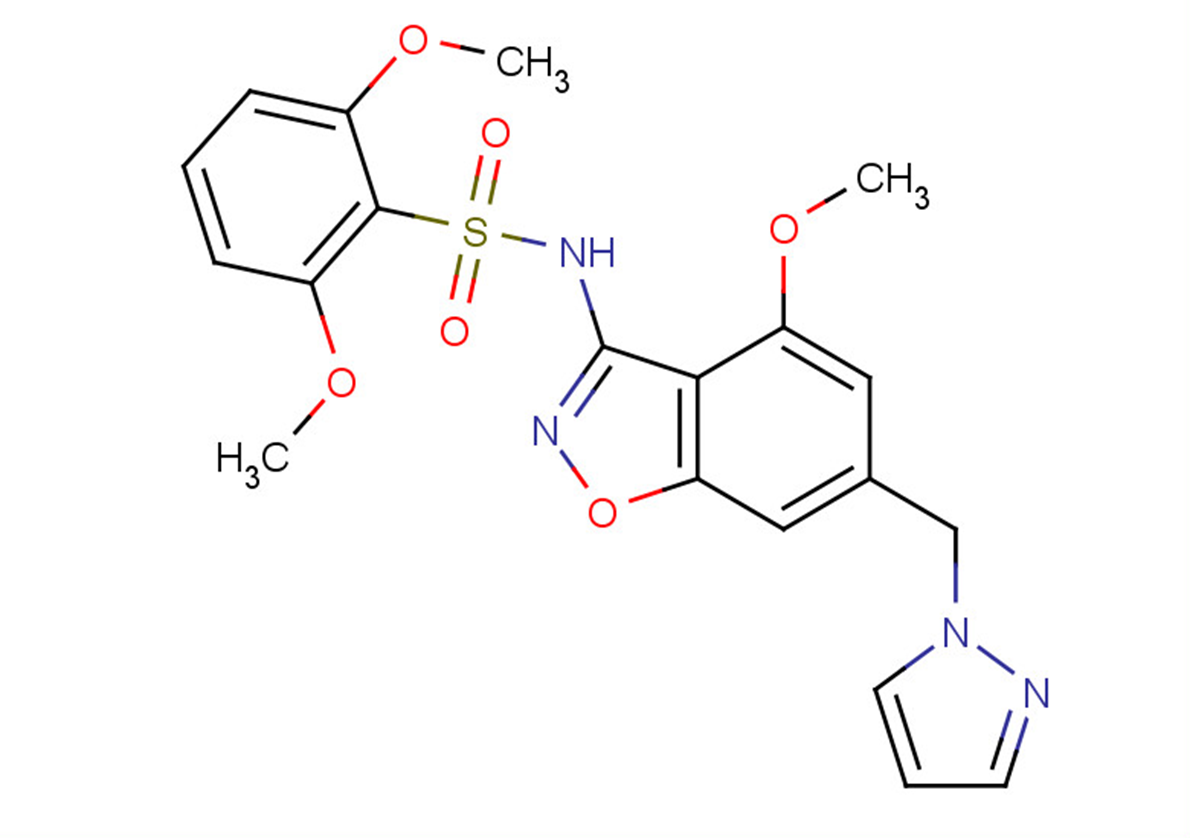 SMILESO=S(C1=C(OC)C=CC=C1OC)(NC2=NOC3=C2C(OC)=CC(CN4N=CC=C4)=C3)=O