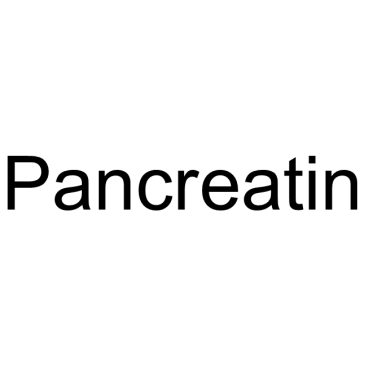DescriptionPancreatin is a mixture of several digestive enzymes produced by the exocrine cells of the pancreas. It is composed of amylase, lipase and protease. (In Vitro):Pancreatin is the porcine pancreas extract (PPE) which contains the main pancreatic digestive enzymes. The amount of free fatty acids (FFAs) titrated at pH 6.5 does increase by 120 and 28% for II-LC and IIIA-LC, respectively, when Pancreatin is increased from 150 to 900 USP U/mL, and the total extent of lipolysis increases by 79 and 28% II-LC and IIIA-LC, respectively. By elevating Pancreatin activity from 150 to 900 USPU/mL, the total extent of digestion on average for LC-LBFs increases by 51%, whereas the amount of FFAs detected at pH 6.5 increases by 55% on average. An increase in extent of digestion is also observed with increasing Pancreatin levels.