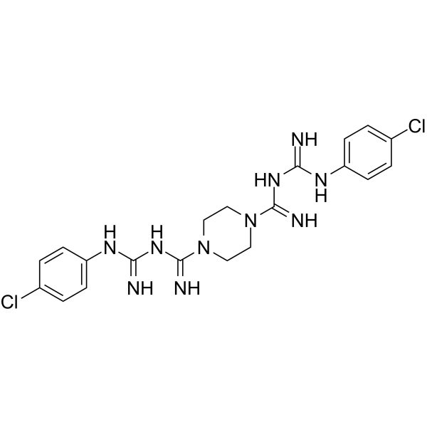 SMILESClc1ccc(NC(=N)NC(=N)N2CCN(CC2)C(=N)NC(=N)Nc2ccc(Cl)cc2)cc1