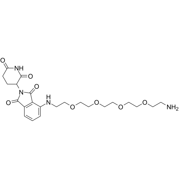 Pomalidomide-PEG4-C2-NH2 is a synthesized E3 ligase ligand-linker conjugate incorporating the Pomalidomide-based cereblon ligand and 4-unit PEG linker.