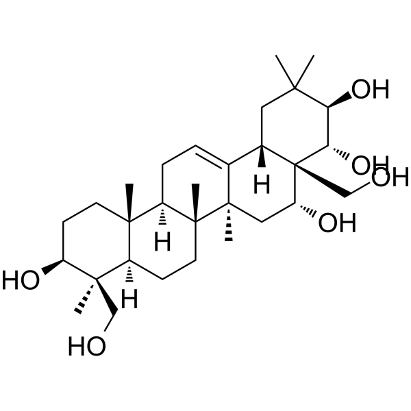 SMILES[H][C@@]12CC(C)(C)[C@@H](O)[C@H](O)[C@]1(CO)[C@H](O)C[C@]1(C)C2=CC[C@]2([H])[C@@]3(C)CC[C@H](O)[C@](C)(CO)[C@]3([H])CC[C@@]12C