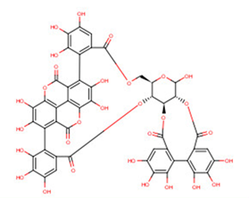 SMILESOc1c(O)c8c3c2c4c(C(=O)Oc12)c(c(O)c(O)c4OC3=O)c5c(O)c(O)c(O)cc5C(=O)OC[C@H]%10OC(O)[C@@H]%11OC(=O)c6cc(O)c(O)c(O)c6c7c(O)c(O)c(O)cc7C(=O)O[C@H]%11[C@@H]%10OC(=O)c9cc(O)c(O)c(O)c89