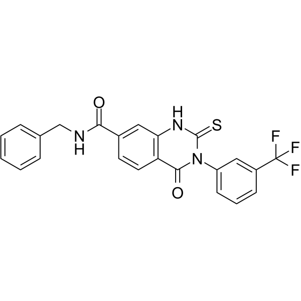 SMILESFC(F)(F)c1cccc(c1)N1C(=S)N=C2C=C(C=C[C@@H]2C1=O)C(=O)NCc1ccccc1