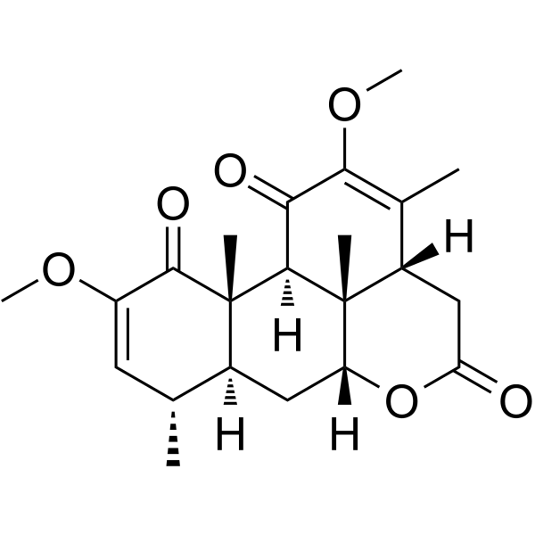 In VivoQuassin (0.1-2.0 mg/kg; oral administration; daily; for 60 days; females albino rats) treatment shows a significant decrease in the weight of the ovary and uterus. And also shows a significant decrease in serum estrogen levels in quassin treated rats. The Quassin treated rats has a significantly decreased mean litter number and weight. Quassin does not adversely affect the weight of the kidney, heart, liver and the body of the rats. Animal Model:35 females albino rats (150-170 g) .Dosage:0.1 mg/kg, 1.0 mg/kg and 2.0 mg/kg Administration:Oral administration; daily; for 60 daysResult:There was a significant decrease in the weight of the ovary and uterus in all the groups relative to the control. There was also a significant decrease in serum estrogen levels in quassin treated rats.