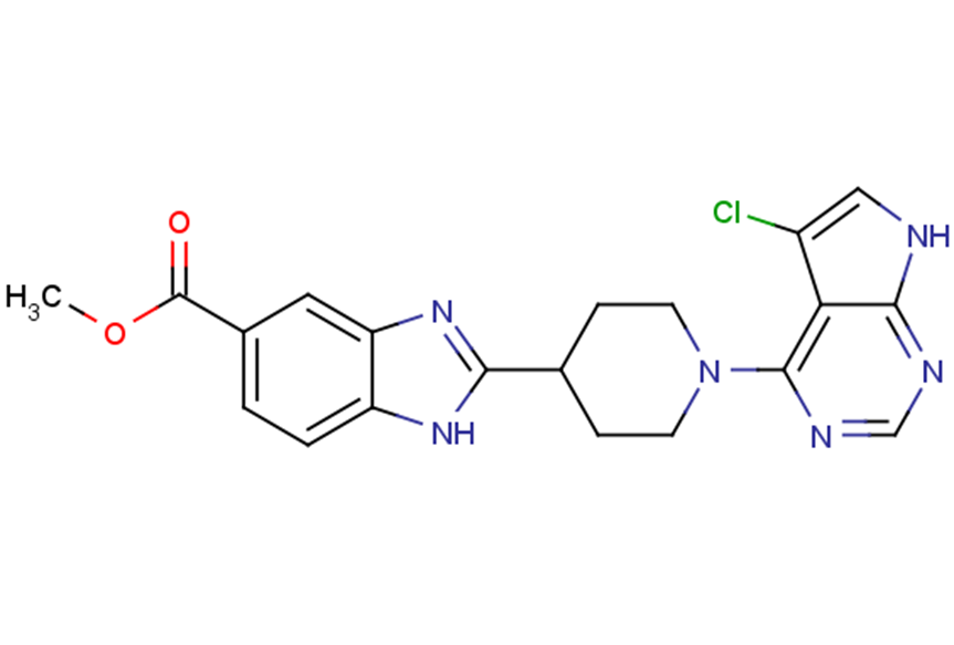 SMILESCOC(=O)c1ccc2[nH]c(nc2c1)C1CCN(CC1)c1ncnc2[nH]cc(Cl)c12