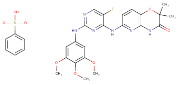 SMILESOS(=O)(=O)C1=CC=CC=C1.COC1=CC(NC2=NC=C(F)C(NC3=NC4=C(OC(C)(C)C(=O)N4)C=C3)=N2)=CC(OC)=C1OC