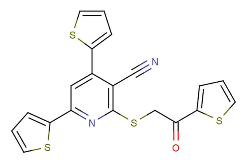 SMILESO=C(CSc1nc(cc(-c2cccs2)c1C#N)-c1cccs1)c1cccs1