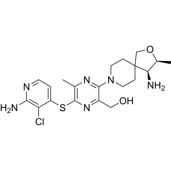 SMILESC[C@@H]1OCC(CC2)(CCN2c(nc2C)c(CO)nc2Sc2ccnc(N)c2Cl)[C@@H]1N