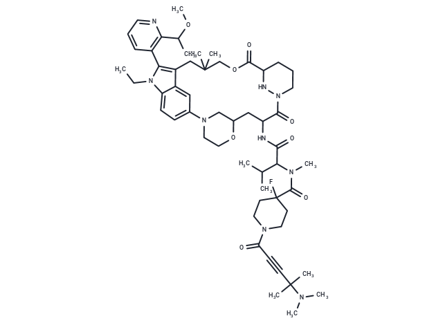 SMILESO=C(C#CC(N(C)C)(C)C)N1CCC(F)(C(=O)N(C)C(C(=O)NC2C(=O)N3NC(C(=O)OCC(C)(C)CC=4C5=CC(=CC=C5N(C4C=6C=CC=NC6C(OC)C)CC)N7CCOC(C7)C2)CCC3)C(C)C)CC1