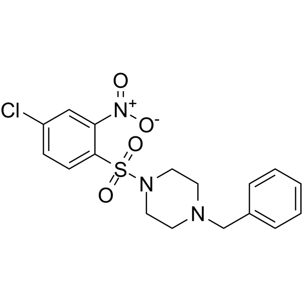 SMILES[O-][N+](=O)c1cc(Cl)ccc1S(=O)(=O)N1CCN(Cc2ccccc2)CC1