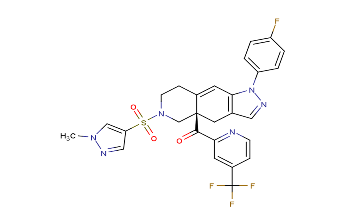 SMILESCN1C=C(C=N1)S(=O)(=O)N2CCC3=CC4=C(C[C@@]3(C2)C(=O)C5=NC=CC(=C5)C(F)(F)F)C=NN4C6=CC=C(C=C6)F