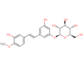 SMILESCOC1=C(C=C(C=C1)C=CC2=CC(=CC(=C2)OC3C(C(C(C(O3)CO)O)O)O)O)O