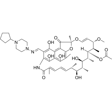 SMILESCO[C@H]1/C=C/O[C@]2(Oc(c(C)c3O)c(C2=O)c4c3c(O)c(NC(/C(C)=C\C=C\[C@@H]([C@@H]([C@H]([C@H]([C@H]([C@@H]([C@@H]1C)OC(C)=O)C)O)C)O)C)=O)c(/C=N/N5CCN(C6CCCC6)CC5)c4O)C