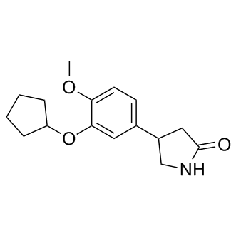 Brief DescriptionA potent, selective inhibitor of phosphodiesterases PDE4 with IC50 of 3 nM, 130 nM and 240 nM for PDE4A, PDE4B, and PDE4D, respectively.