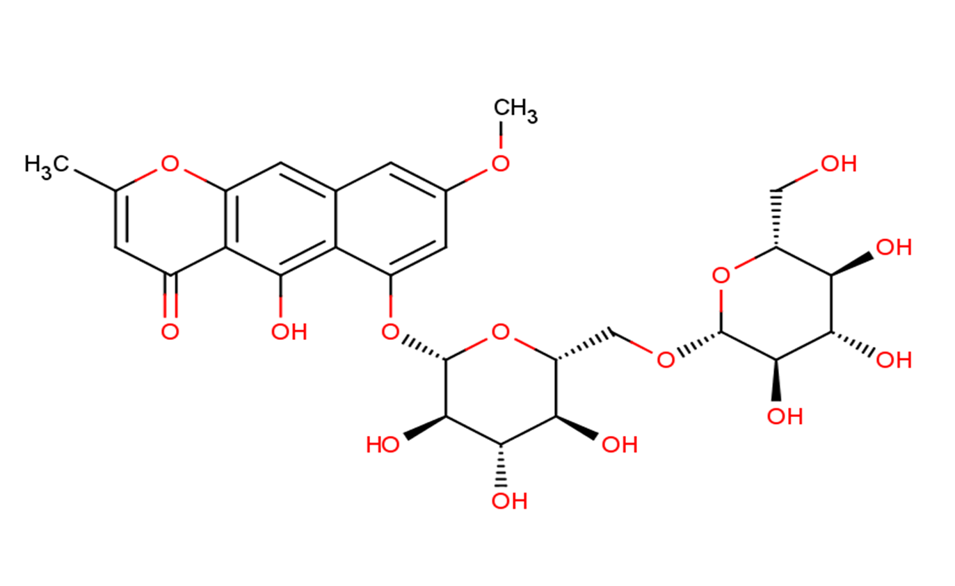 SMILESOC1=C2C(O[C@@H]3O[C@@H]([C@@H](O)[C@H](O)[C@H]3O)CO[C@@H]4O[C@@H]([C@@H](O)[C@H](O)[C@H]4O)CO)=CC(OC)=CC2=CC5=C1C(C=C(C)O5)=O