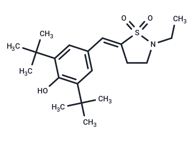 DescriptionS-2474 is an inhibitor of COX-2 and 5-lipoxygenase (5-LO), with IC50s of 11 nM and 27 μM for COX-2 and COX-1 in human intact cells, and used as a nonsteroidal anti-inflammatory agent.