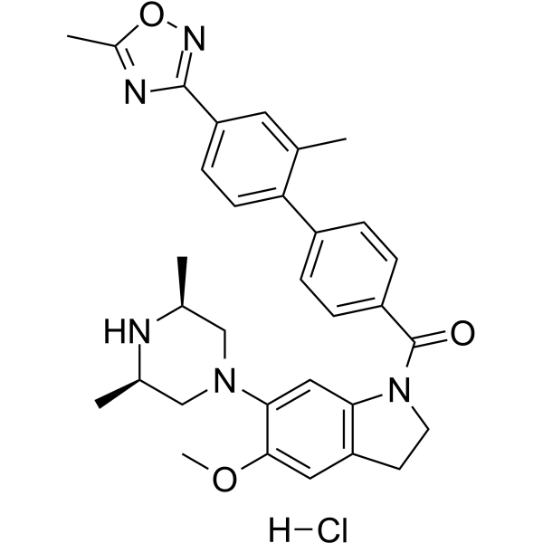 SMILESCl.COc1cc2CCN(C(=O)c3ccc(cc3)-c3ccc(cc3C)-c3noc(C)n3)c2cc1N1C[C@H](C)N[C@H](C)C1