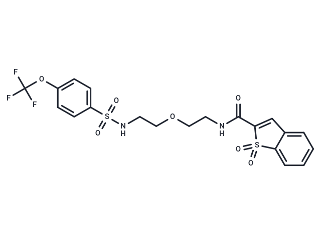 SMILESFC(F)(F)Oc1ccc(cc1)S(=O)(=O)NCCOCCNC(=O)C1=Cc2ccccc2S1(=O)=O