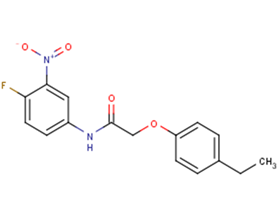 SMILES[O-][N+](=O)c1cc(ccc1F)NC(=O)COc2ccc(cc2)CC