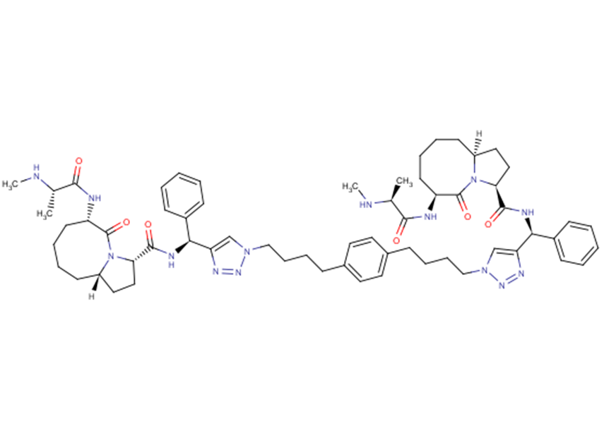 Brief DescriptionSM-164 binds to XIAP protein containing both the BIR2 and BIR3 domains (IC50: 1.39 nM). It acts as an extremely potent antagonist of XIAP. SM-164 binds to XIAP being 300 and 7000-times more potent than its monovalent counterparts and the natural Smac AVPI peptide, respectively.