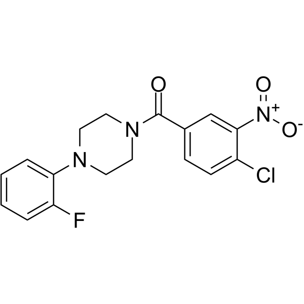SMILES[O-][N+](=O)c1cc(ccc1Cl)C(=O)N1CCN(CC1)c1ccccc1F